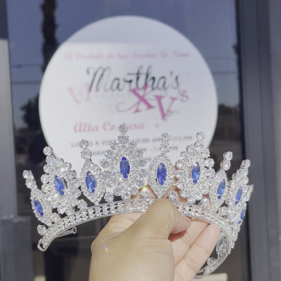 Corona plateada con azul.