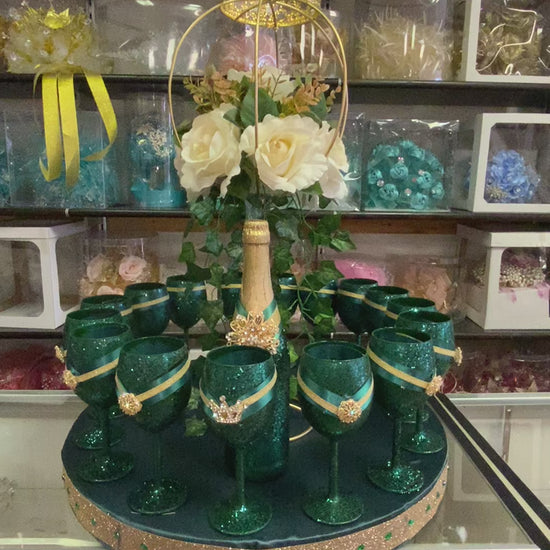 Brindis de Quinceañera estilo royal de color verde.